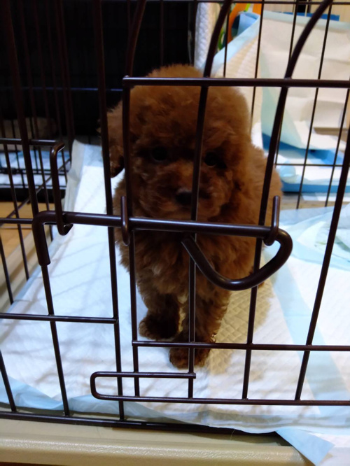 犬種はプードルで生後まだ二カ月らしいです。