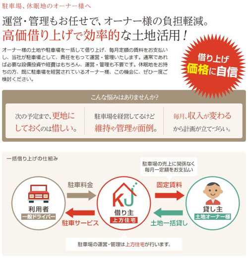 株式会社上方住宅 > 株式会社上方住宅のスタッフブログ記事一覧 > 駐車場の一括借り上げ(サブリース)