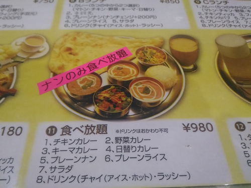 980円でナンチェンジ食べ放題、さらにキーマカレー、チキンカレー
